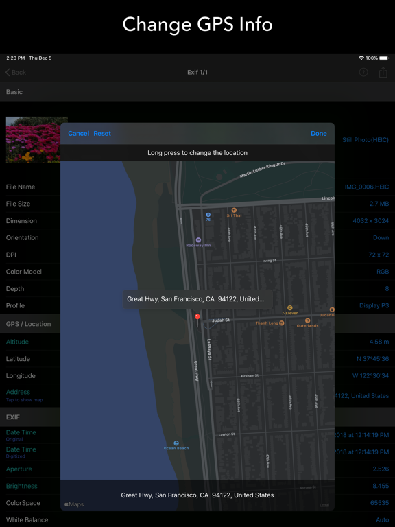 You can view and modify EXIF and meta data directly not only from Photos app but also from any 3rd party app. For those who want more efficient browsing, it also supports powerful photo browser.