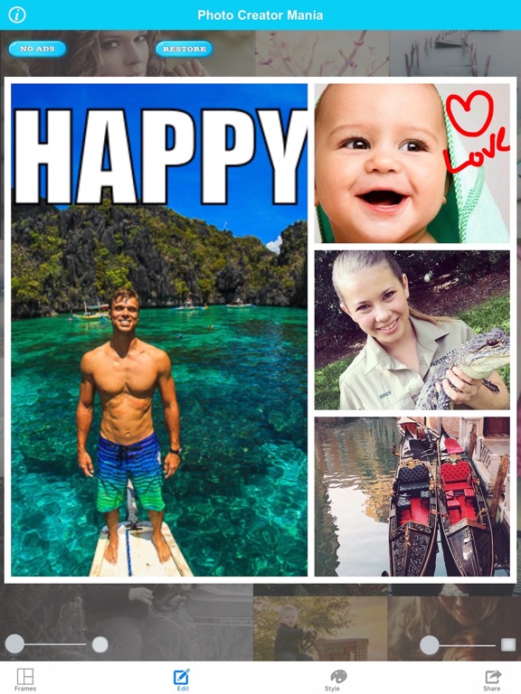 Photo Creator Mania Pro allows you to instantly create and share beautiful photo collages with friends and