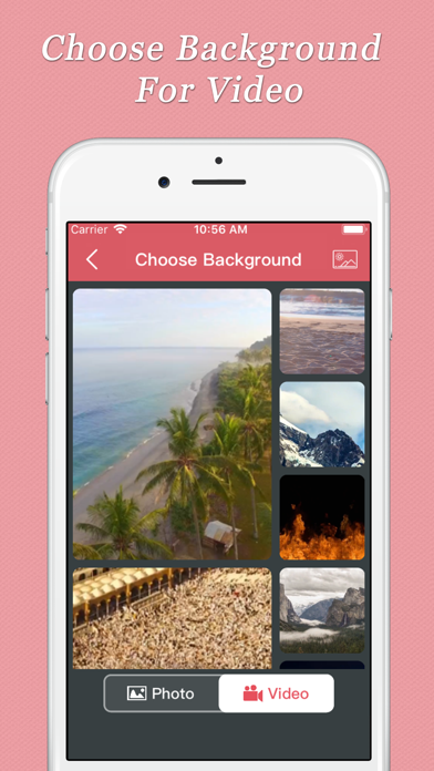 * Select any video clip which you like to add in your photo background or select any photo as photo background.