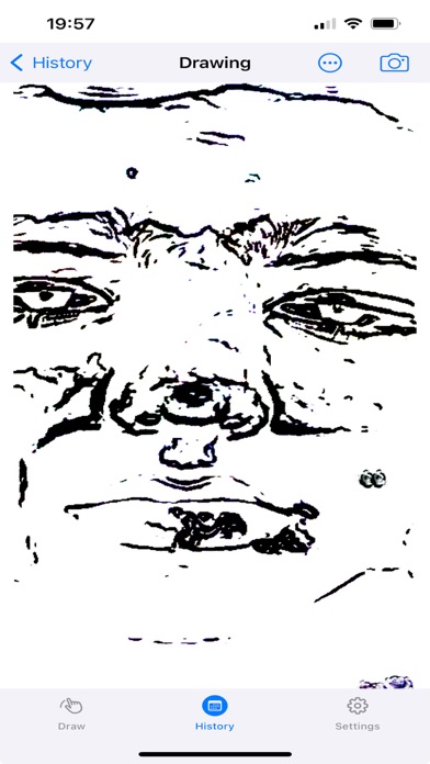 The final result of each drawing is stored locally on disk or in iCloud. One of the app settings is the number of drawings to retain (up to 100). The latest results are browsed in the History tab, where the previously created drawings can also be drawn again, deleted, shared, locked - meaning they won't be deleted automatically by the app - or viewed in detail by selecting that drawing.