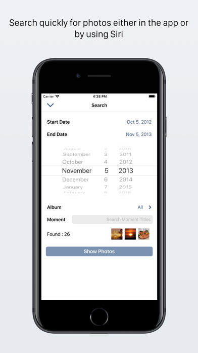 - Search for photos by date or title of moments.