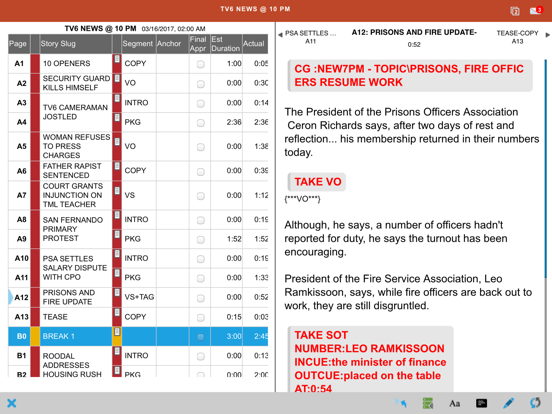 The included Tablet Story Viewer (TSV) lets anchors and reporters read and review stories directly from their iPhone or iPad and stay in sync with story changes automatically. All TSV content is cached on your device in the event your connection to the server is interrupted.