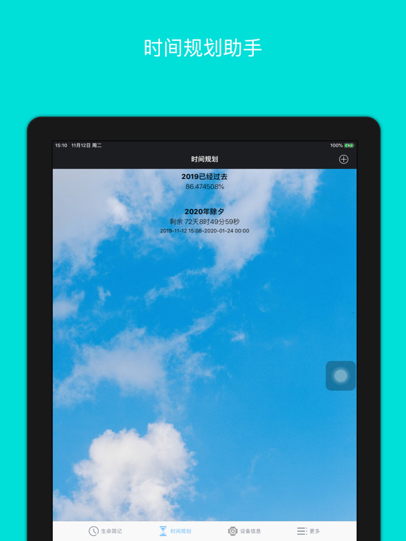 时间规划助手-通知倒计时提供了一个widget小组件显示今年已经过去了多少的百分比,支持农历。提醒你珍惜自己的时间。自定义提醒。重要事情不忘记。