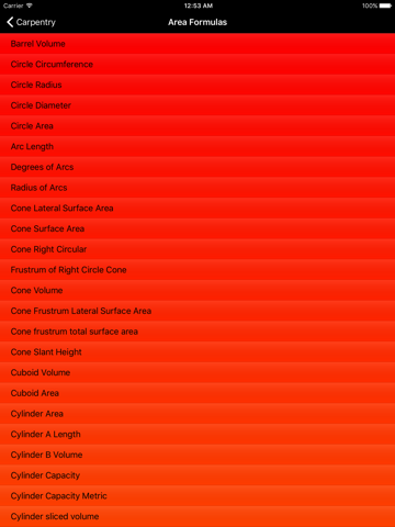 The CARPENTRY FORMULATOR has various formulas to calculate area and volumes of differing shapes. The program also includes dozens of conversions; everything from square feet to square inches and square inches to feet of water.