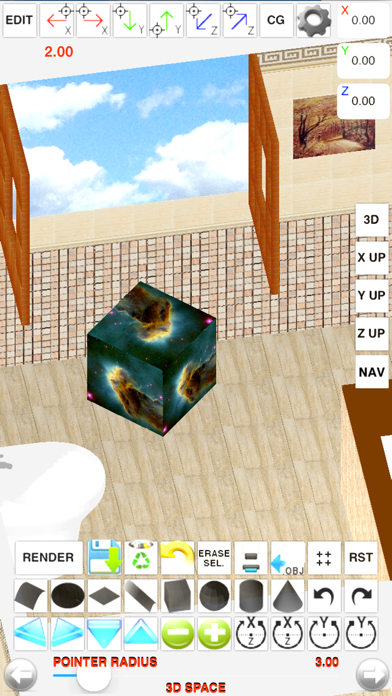 Potrai navigare il mondo 3D utilizzando le dita delle tue mani... avrai a disposizione la vista tridimensionale (3D), la vista dall'alto (Y UP), da destra (X UP), frontale (Z UP).