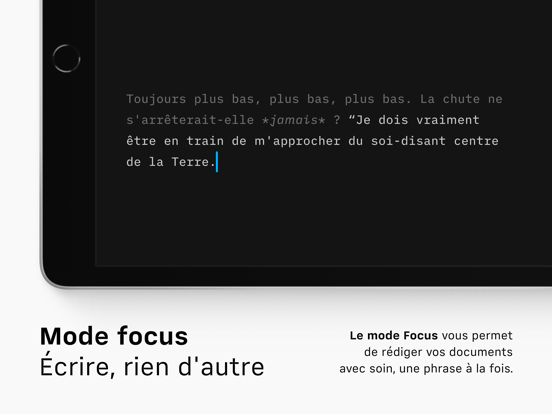 « l’application iA Writer permet de se focaliser sur le texte et donne un accès direct aux touches de ponctuation. » —Le Figaro