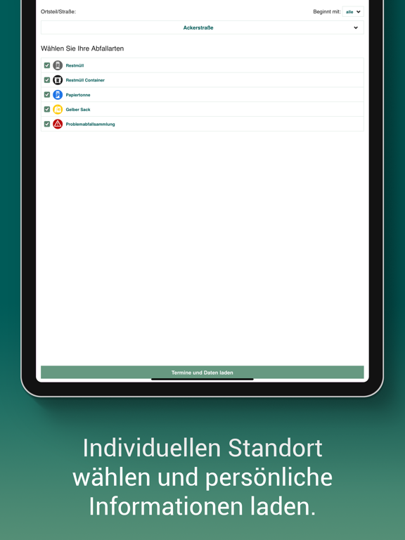 * Mit der Erinnerungsfunktion, als Push und/oder E-Mail Benachrichtigung keine Tonnenleerung mehr verpassen.