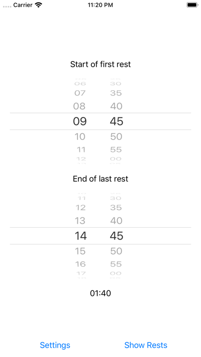 On an iPad or a Plus sized iPhone (in landscape orientation), both the time picker and the resulting rest times are shown simultaneously.