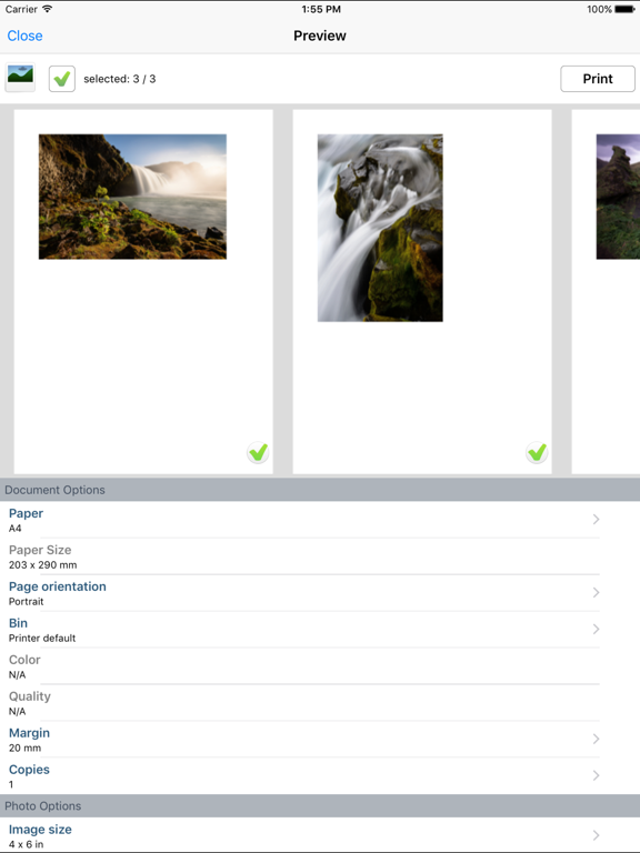 À l'aide de l'application payante PrinterShare, vous pouvez imprimer le contenu suivant :