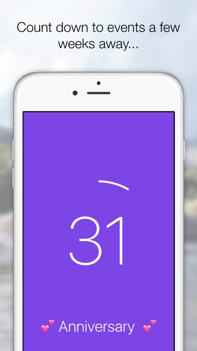 • Easy creation of new Countdowns: just type a title, select a color, and pick a date. Done!