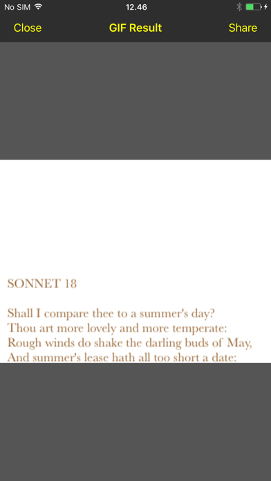 Just paste the text into Text To GIF. Set the color of the paper and the font, add shadow or a background image. Finally, with a single tap, create an exciting, animated GIF image.