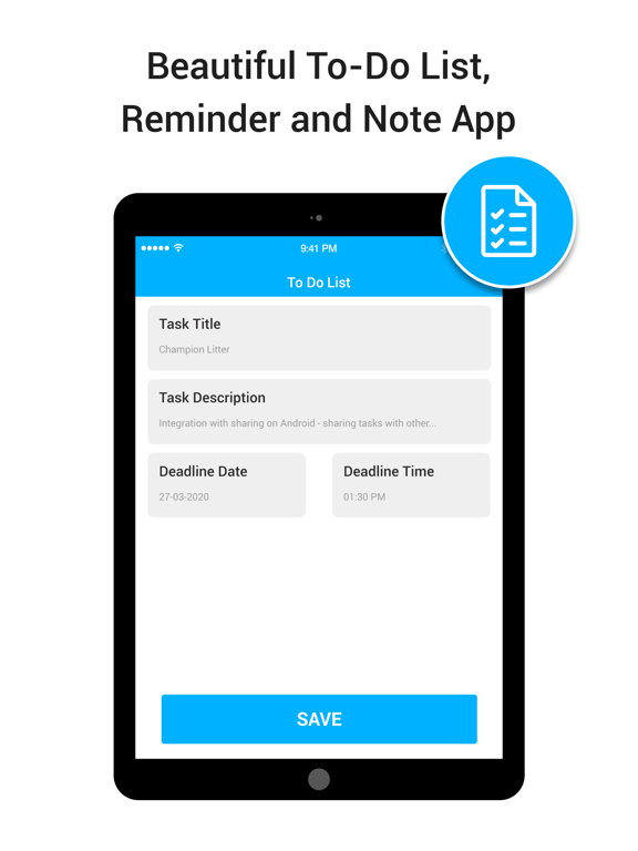 • Deadlines are no longer a problem with Reminder; simply create a reminder for each deadline and let the app do the work for you.