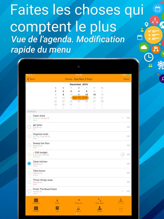 • Listes ciblées : visualisez instantanément toutes les tâches dues aujourd'hui ou en retard