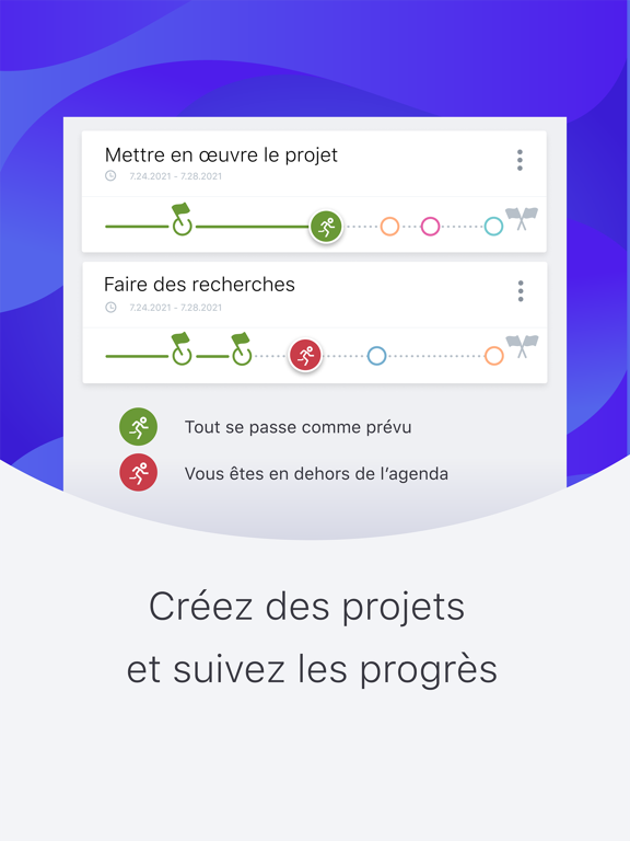 Sur l'écran Délais, suivez le temps qu'il reste avant l'achèvement de la prochaine étape et du projet dans son ensemble.
