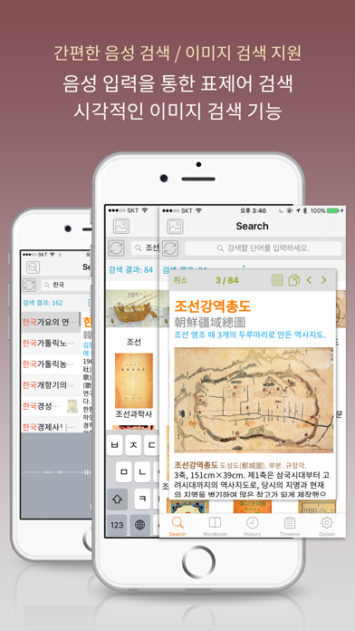 ▶ 국내 한국사 최초로 사용자 편의를 위한 “유사 단어JUMP/형광펜/이미지 검색/연표/퀴즈/암기 학습/책갈피/히스토리/백업” 등의 기능 적용