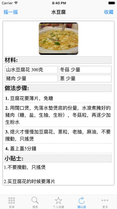原生iOS界面,完美适配。最简洁清新的粤菜大全,离线数据,全设备通用。一键收藏,摇一摇随机选择菜谱,支持全文搜索。
