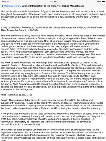 iCoptic Library is the ultimate pocket library for any Copt. The library contains many readings that a Copt may want to reference during the day for spiritual benefit: Liturgies (St. Basil, St. Gregory, St. Cyril), Agpeya, prayers, sayings of the Fathers, a large selection of hymns and spiritual articles by leaders of the Church and a large selection from the lives of the Saints.
