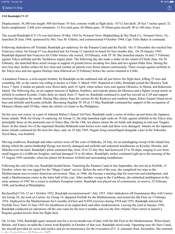 The compete history of all US Naval Ships is included in this comprehensive program. This app contains photographs of every United States Naval Aircraft Carrier, Battleship, Cruiser, Destroyer and Submarine.