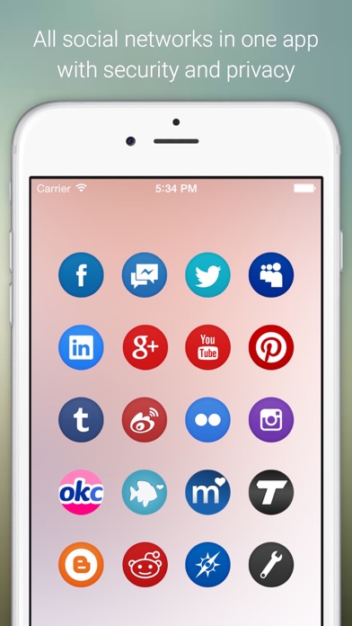 The app uses the mobile website of the social networks so you get the same high level of security provided by the social networks. We do not log or store any of your credentials or personal information.