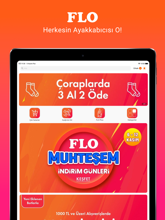 Erkek ev terliği, erkek ve bayan sandalet, Crocs terlik kadın ve erkek modelleri, çocuk ayakkabı, kadın ve erkek panduf, abiye ayakkabı, erkek ya da kadın tişört, kışlık ve yazlık ayakkabı çeşitleri, yetişkin ve çocuklar için atlet modelleri, çocuklar için ışıklı ayakkabı seçenekleri ve binlerce ürün… FLO dünyasının ayrıcalıklarını hemen keşfetmek için uygulamayı indirebilir, en avantajlı fiyatlarla dilediğiniz ürünü satın alabilirsiniz!