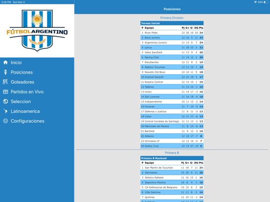 - Marcadores en vivo: sigue los partidos en vivo a través de los marcadores online y disfruta de estar actualizado con todo lo que sucede en el fútbol de Argentina. Servicio similar al ofrecido por otras aplicaciones como Roja Directa