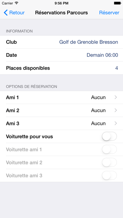 Application de réservation du Golf d'Amnéville les Thermes