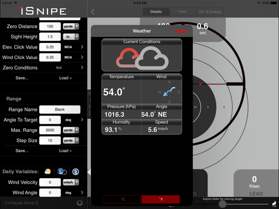 Created with ease of use in mind, iSnipe is the perfect companion to Military/Law-Enforcement Officers, Competition Shooters and Gun Aficionados alike. With all the features you'd expect from a mobile, ballistics calculator including the ability to save and load ammo/firearm/shooting range profiles, automatic saving of form values, combined with all the features you'd expect from an integrated iOS app, there is no better way to get on target every time.