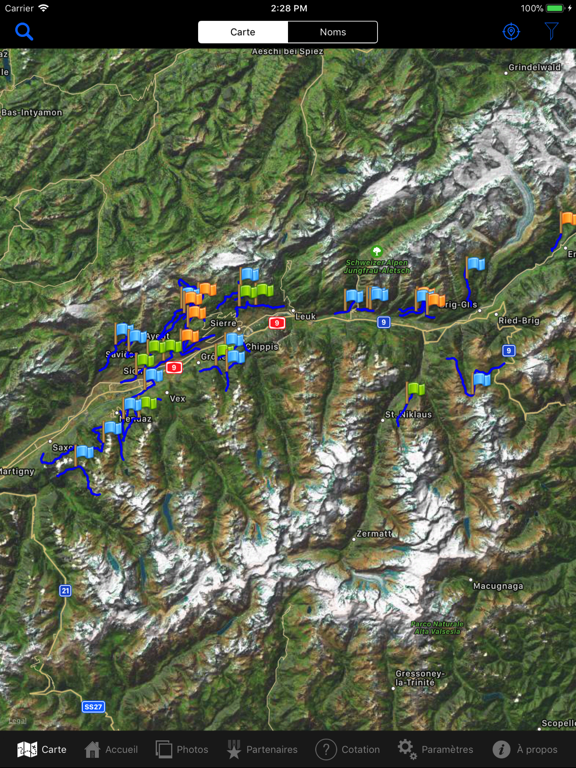 • Recherchez facilement les bisses, les arrêts de transport en commun et les places de stationnement à proximité, facilitant ainsi la logistique de votre exploration.