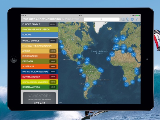 Downloading the app is free and includes two preview regions (Cape Town, South Africa & Tarifa - Strait of Gibraltar, Spain) for you to explore its ‘look and feel’ and the basic functions of the app. You can then choose between comprehensive EUROPE and WORLD packages with a monthly, annual or lifetime subscription.