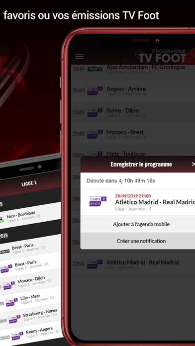 - Affichage des matchs de vos favoris (clubs, ligues, chaînes)