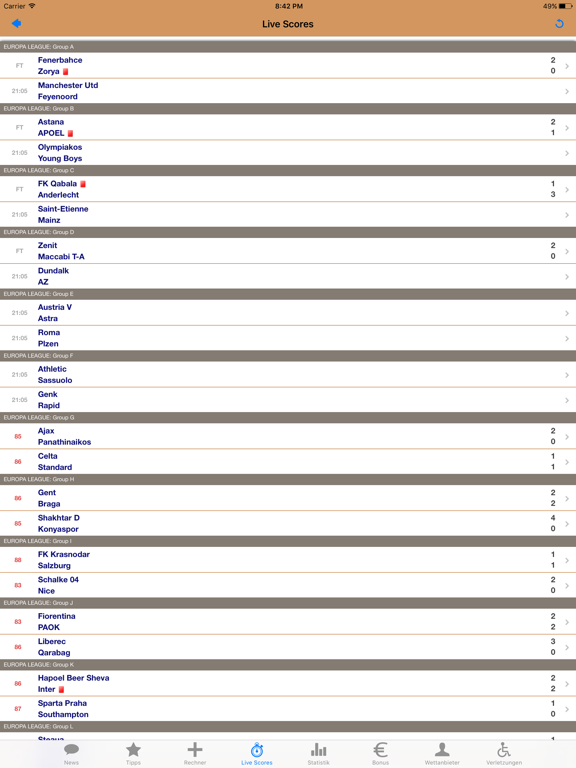Zusätzlich gibt es im Bereich Statistik für alle großen Ligen die Möglichkeit sich über Ergebnisse, Karten, Schiedsrichter und Head to Head-Vergleiche sowie vieles andere mehr zu informieren.