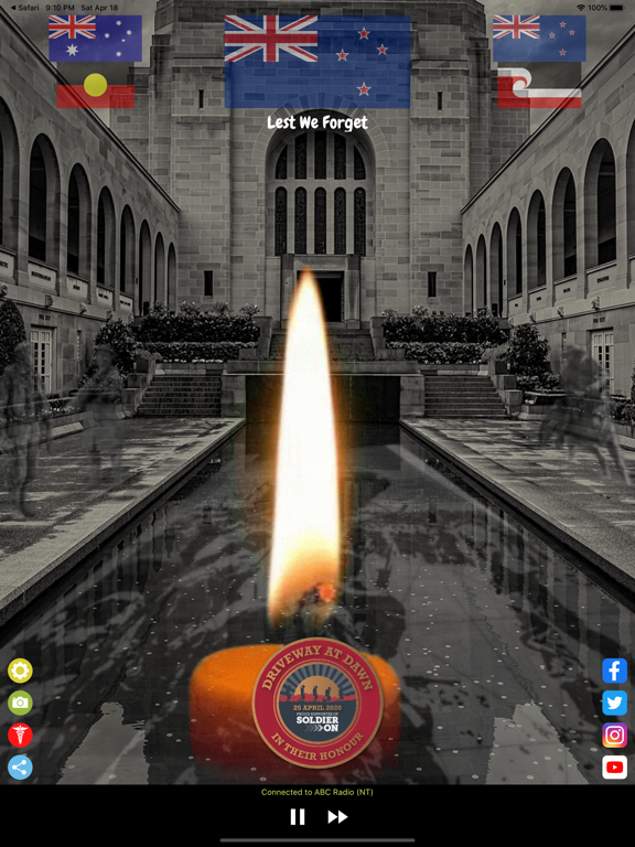 The ANZAC Day 2020 mobile application will deliver and guide you through the Driveway at Dawn service this year. It contains either a live broadcast of the National Service from your own country or a pre-recorded short recitation of The Ode, The Last Post, a minute of silence and Reveille.