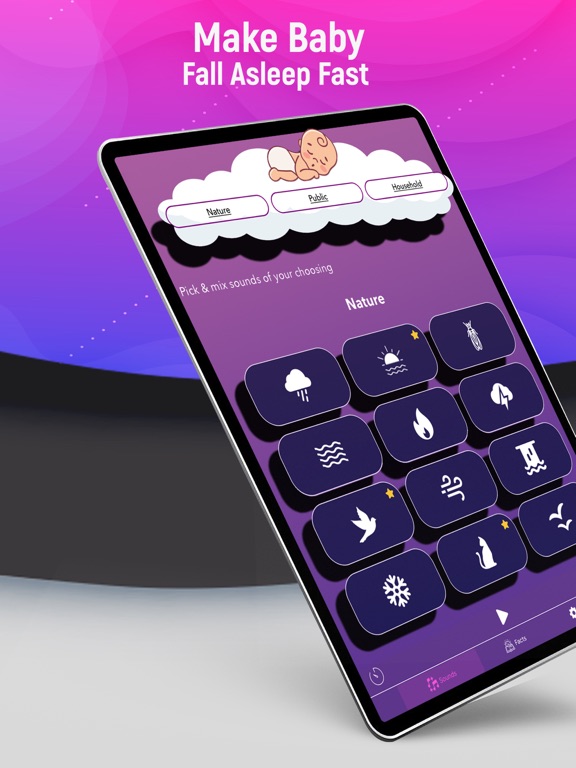 • Select sounds and combine them to create a mix that your baby loves.
