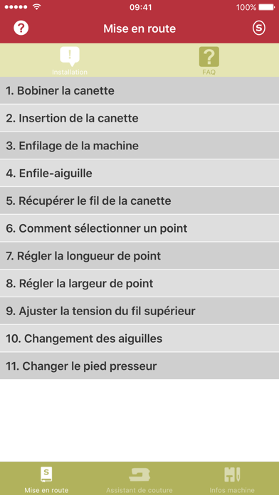 Dans cette section de l’application vous vous familiarisez avec votre machine* à coudre SINGER® et en apprendrez plus sur: