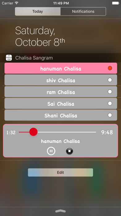 Play chailisa in Today Widget.(without open app).