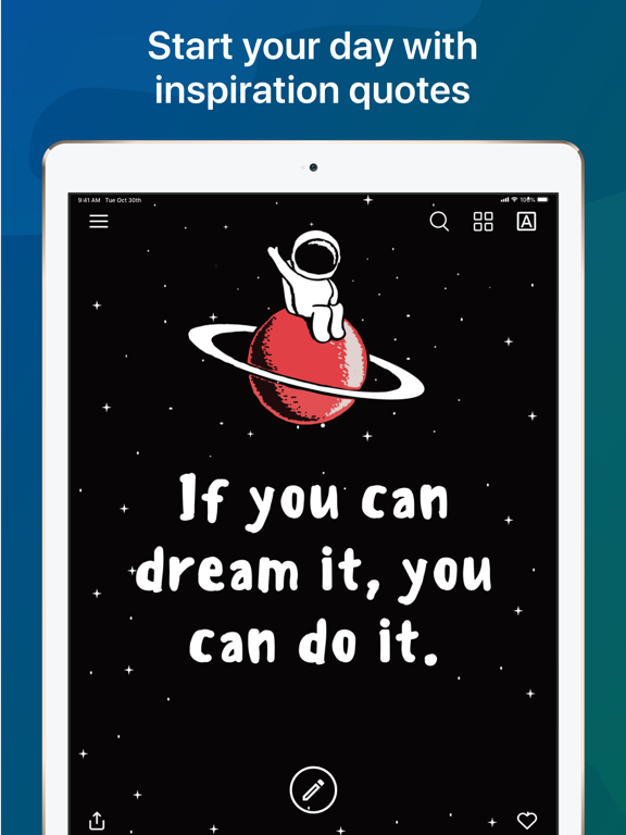 Plus, Inspiration takes away the hassle of customizing a quote with hundreds of ready to use templates. Save your favorite quotes with these beautiful templates, add your personal touch, share it or save as a picture, wallpaper to keep your spirit up whenever looking at the screen.