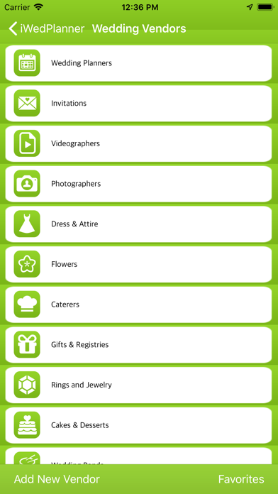 When planning a wedding, you are probably going to be dealing with several vendors. It could all get confusing if you don't have a way to organize the vendors. With the wedding planner app, you can organize your vendors according to your favorites. As you get closer to the wedding date, you will appreciate the quick access to the vendors, especially if someone cancels on you at the last minute.