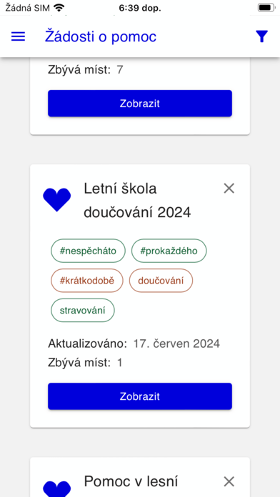 Skrze tuto aplikaci se můžete registrovat jako dobrovolník a pomáhat lidem nebo organizacím, které to opravdu potřebují. Můžete si vybrat z aktuálních žádostí o pomoc a přihlásit se k nim.