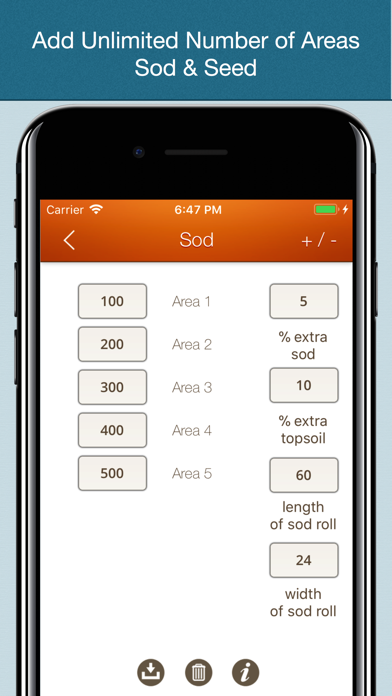 There is no limit to the number of areas you wish to input. This app is available in both imperial and metric units of measure.