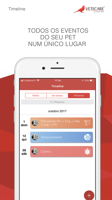 A Timeline of your pets’ life where you will have the date of every event you add on the App.