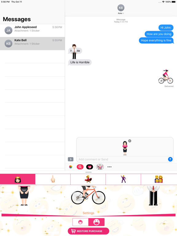 * Glissez et déposez des emojis animés partout sur iMessage. Super cool. Placez-le au-dessus des messages ou des images de votre ami.