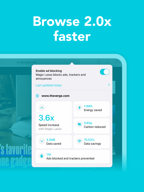 “Magic Lasso couldn’t be easier to set up or use. Pages immediately load faster and read better.” - Nathan Alderman, iMore