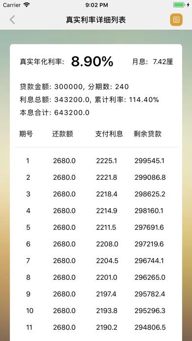 5.支持等额本金(月息递减)方式计算真实利率