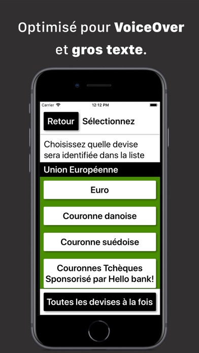 Compatibilité avec l'assistant vocal de votre téléphone pour un démarrage rapide de l'application et un changement de devise.