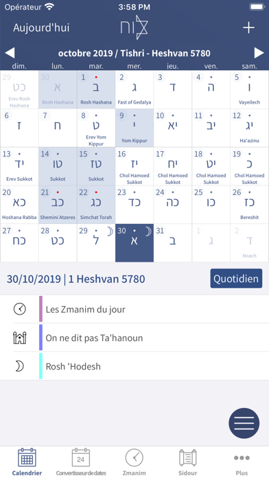 • Calendrier juif complet synchronisé avec votre calendrier local