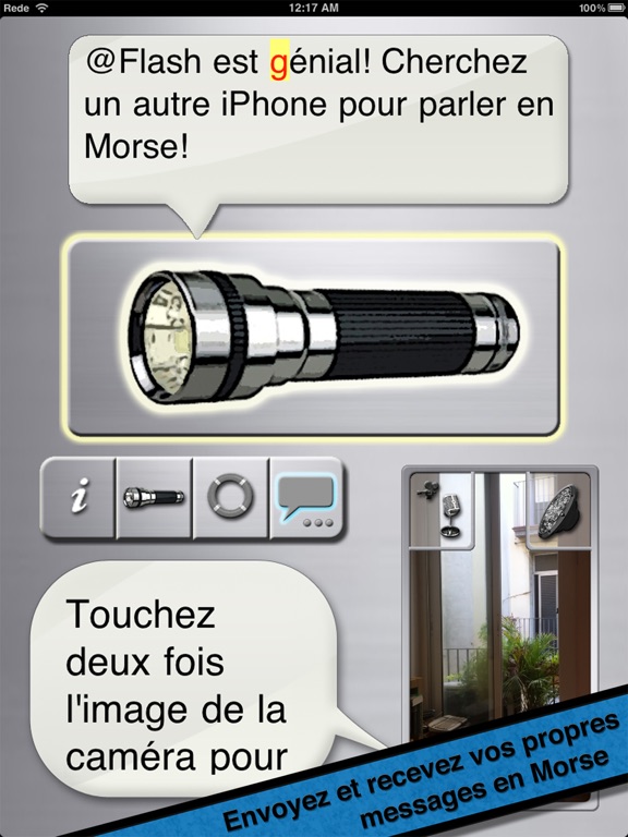 - Un mode pour envoyer tous des messages en Morse avec lumière et son.