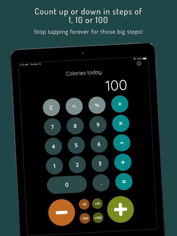 - Count up or down in increments of 1, 10 or 100 with a single tap