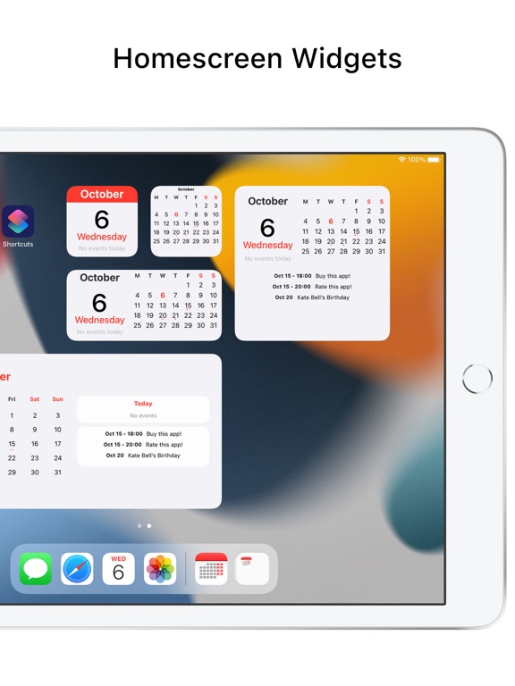 - a extra large widget that shows a calendar and a list of the upcoming events (only for iPadOS 15+)