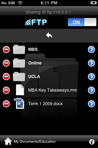 WiFi FTP Turns your iPhone and iPod into a Wireless FTP Server. You can now copy multiple files, folders, or entire hard drives to your iPhone and access this information anywhere. Leave your USB keys behind, your iPhone and IPT can do all that and MORE!