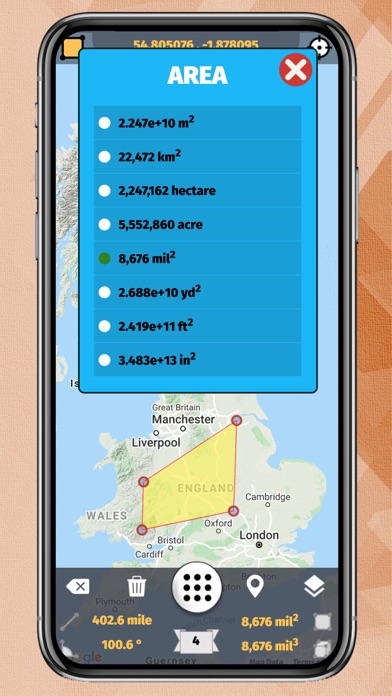 "GPS Area Measure" is an excellent application for the calculation of the area on the map. App gives the highly accurate area, distance, angle and volume information.